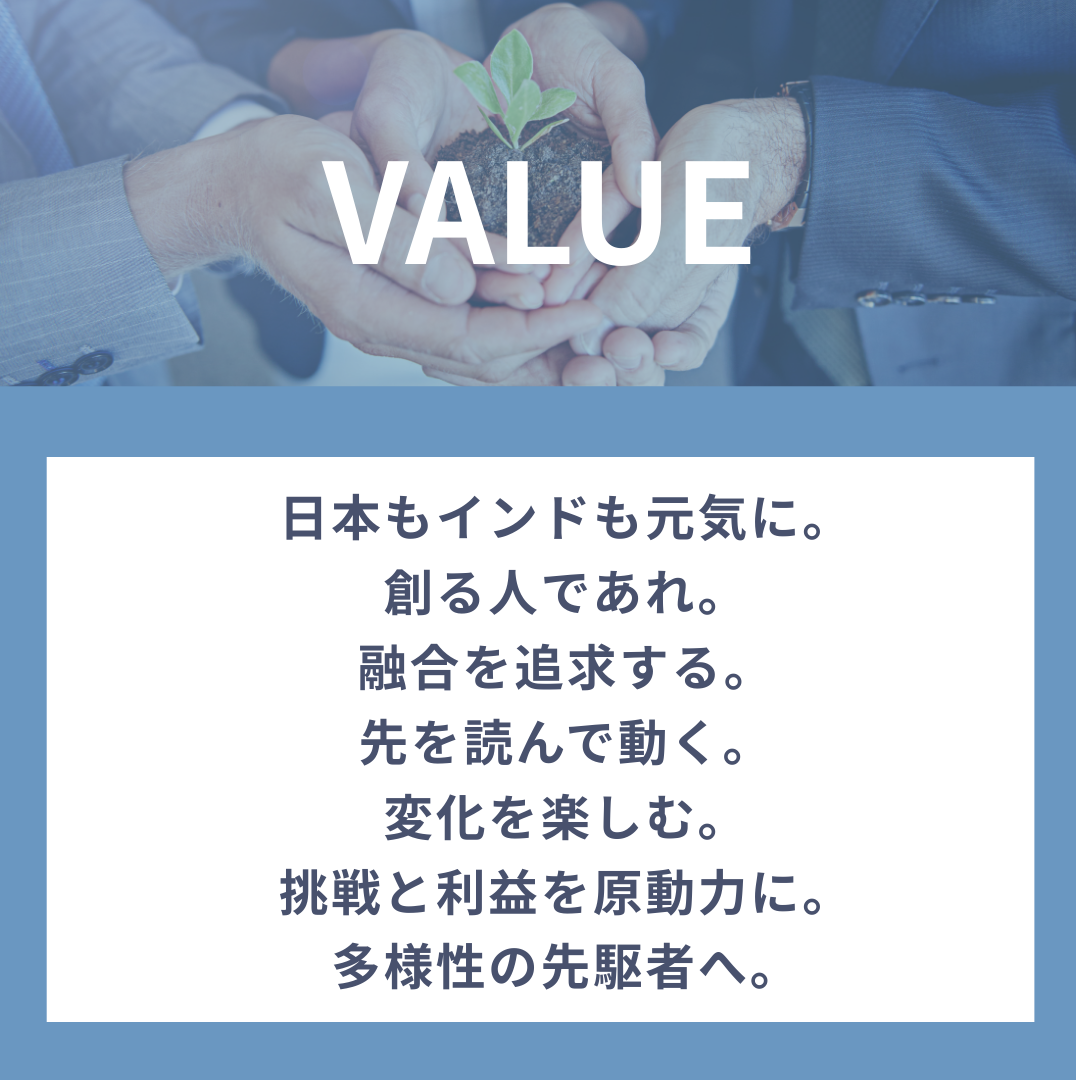 日本とインドはお互いに無いものを持ち合わせています。これらをうまく掛け合わせることで、これまでにはない新たな価値を創出します。大切なのは、そこをつなげる架け橋です。