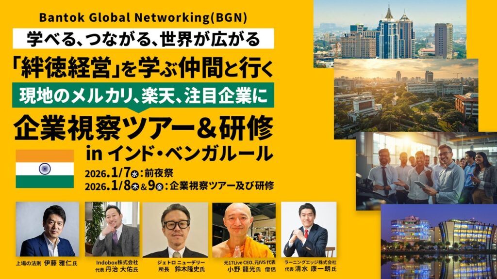 2026年1月9日(金)に行われる、ラーニングエッジ主催の「海外企業視察ツアー&研修 in インド・ベンガルール」にて、弊社代表の丹治が基調講演に登壇いたします。