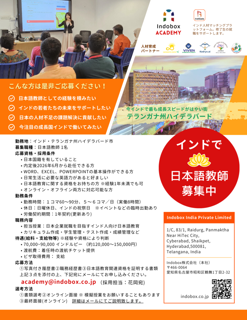 弊社では今年2月より、インド人材育成のための日本語アカデミー「Indobox Academy」を開講致します。