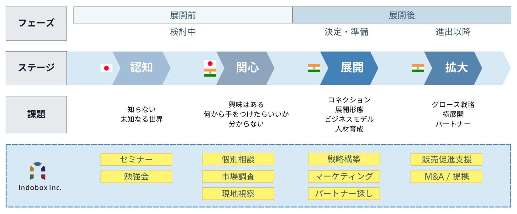 【インド進出のフェーズとIndoboxのサービス】Glab INDIAは展開前フェーズのサポートになります。